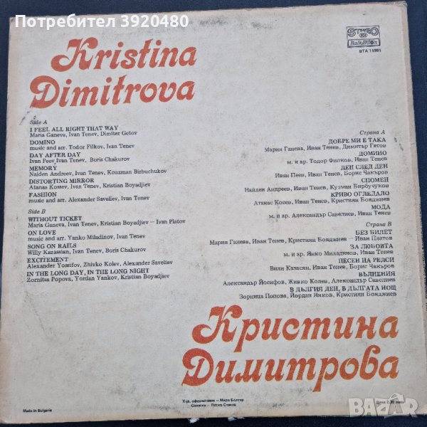 Грамофонна плоча Кристина Димитрова → Обява 43366234