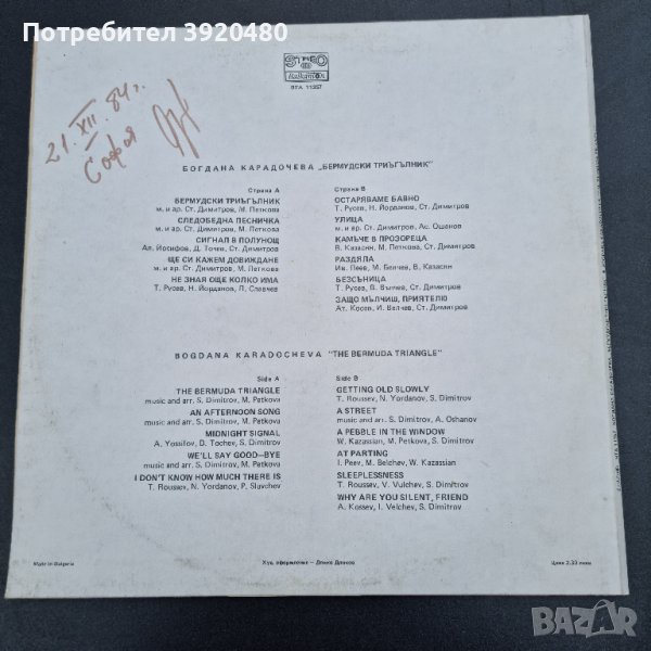 Продавам грамофонна плоча на Богдана Карадочева.