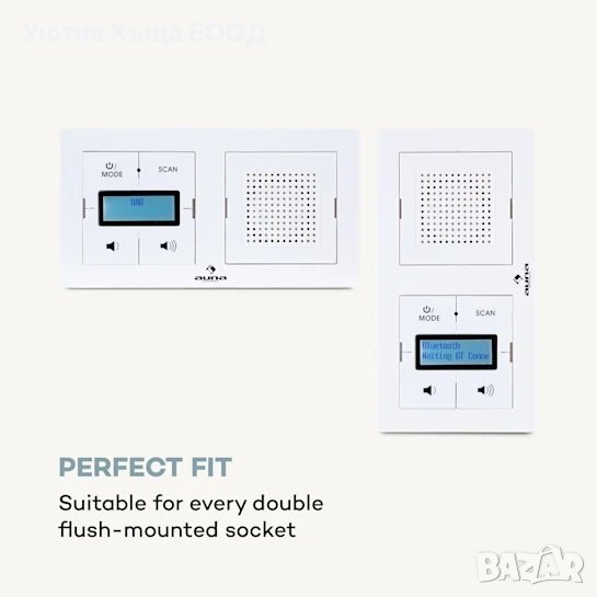 Благодарение на своя компактен и стилен дизайн, радиото за контакт Аuna DigiPlug UP може да се монтира на всеки двоен контакт за скрит монтаж. В допълнение към аспекта на спестяване на място, атрактивното радио впечатлява с разнообразните си функции: с интегрирания DAB + тунер всички радиостанции се приемат цифрово и осигуряват най-високо качество на звука със стабилен звук без шум в допълнение към аналоговия FM тунер.
