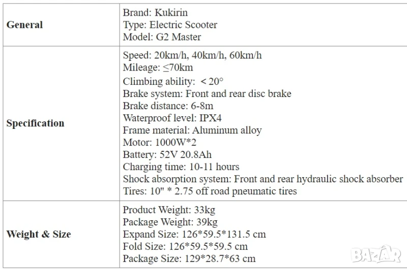 Електрически скутер/тротинетка KuKirin G2 MASTER 2000W 20.8AH