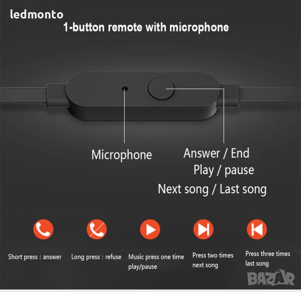 - **1-бутонов дистанционно/микрофон:** Контролирайте възпроизвеждането и отговаряйте на обажданията с удобство.