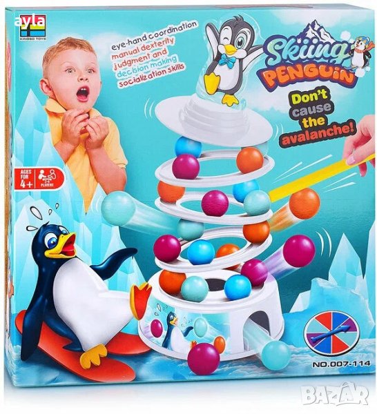 Построява се кула - айсберг. Играчът, който е на ред, върти рулетката и с клечка бута топче с цвета посочен от рулетката. Играчите се редуват докато айсбергът се срути. Играта е изпитание за сръчността и концентрацията на играчите! Включва: