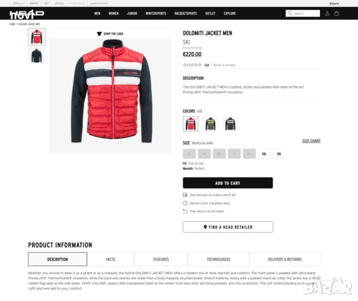 Ново, оригинално мъжко хибридно яке тип среден (междинен) слой - Head Dolomiti