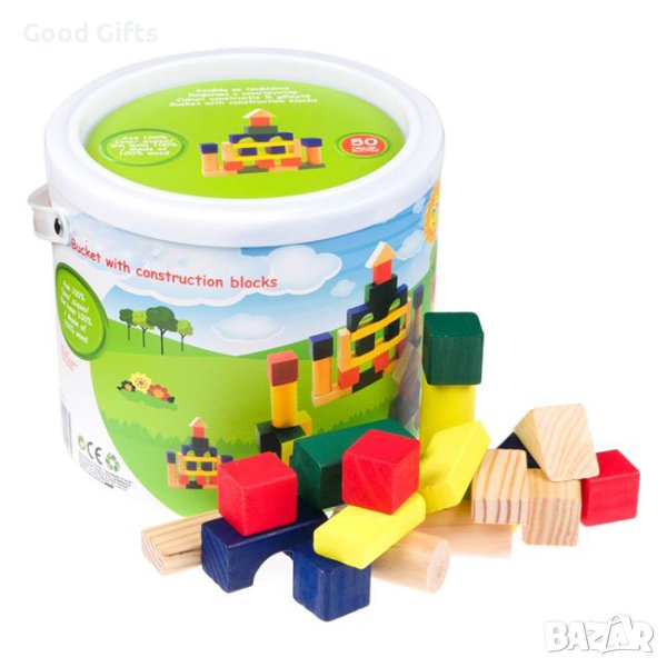 Цветни Дървени кубчета в кофа, 50 части