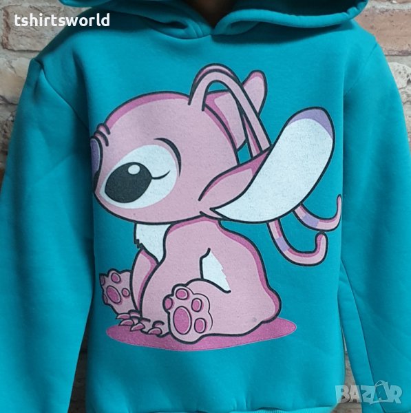 Страхотен нов детски суичър в зелен цвят с качулка и дигитален печат на героя Ейнджъл - Стич от Lilo and Stitch. Произведен в България от 100% висококачествен памук, което го прави изключително топъл и желан от нашите дългогодишни клиенти. Моделът е подходящ за пролетния и есенно-зимният сезон, има ластични маншети на китките и ханша, запазващи топлината. Меката подплата и свободната кройка го прави изключително удобен за нашите клиенти.