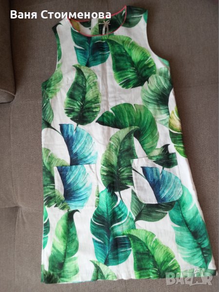Зелена: дължина 82, ширина мишници 41,5, долу 51 см. Памук и лен, с подплата.