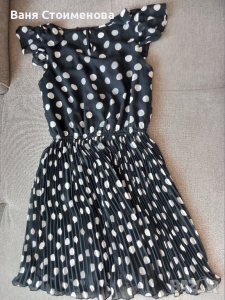 Черна: дължина 82, от рамото до набора 37, от набора до долу 45 см. С подплата.