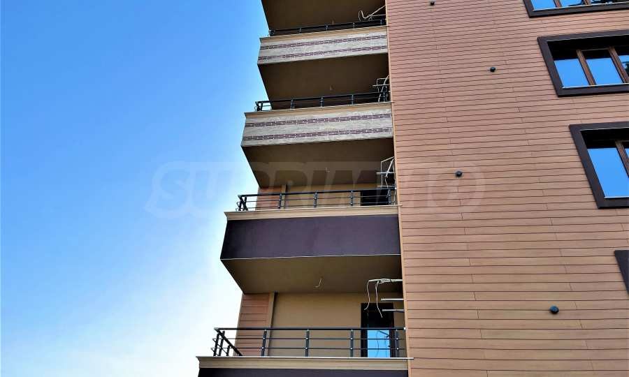 Общи части на сградата напълно завършени, стени - камък Травертин на партерен етаж, останалите етажи водоотблъскваща и UV устойчива мазилка Тракон ;