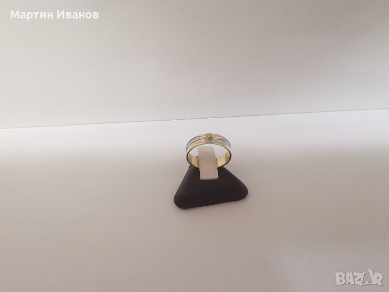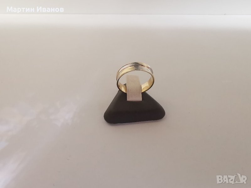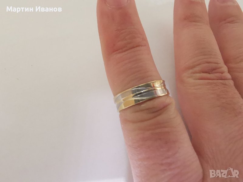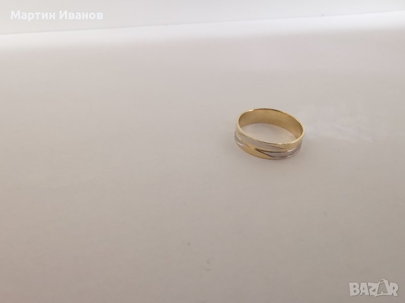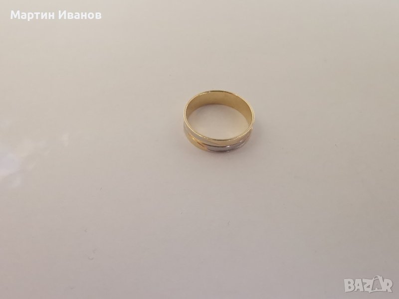 Златна халка единична, бяло и жълто комбинация, 14к, 585пр, 1.73гр, вътрешен диаметър 15мм, размер 48 мярка, ширина 4.5мм