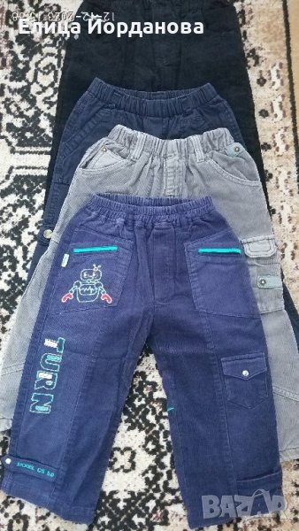 Четири броя термо джинси и термо панталони (ватирани) за момче. Снимала съм всяко панталонче отпред и отзад и снимка вътре,която показва,че е ватирано. Изключително меки и топли,интересни като модели,поради наличието на джобчета. Всичките са с ластик в кръста. Тъй като са различна големина,при интерес ще премеря цяла дължина и дължина от чатала до долу. Наличието на ластик в кръста обуславя разтегливост настрани. Цената е за брой и е символична, дрешките са здрави.