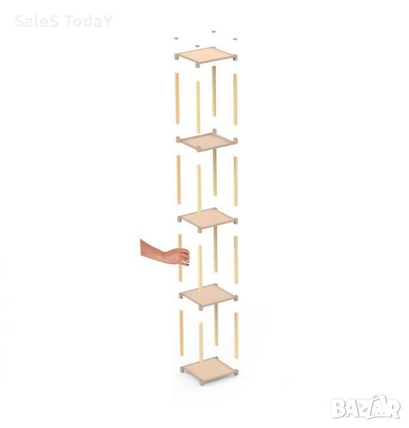 Подов рафт с дървена рамка и 4 пластмасови рафта. Изработен е от материал, който не събира прах и се почиства лесно, а сглобяването му е лесно. Височината на всеки рафт е 30см. Подходящ е за всяка част от къщата.
