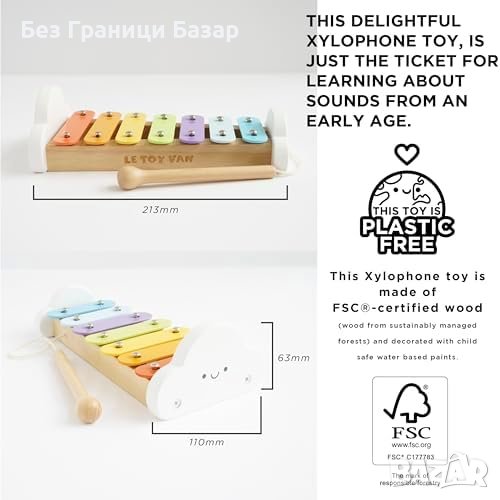 Нова Цветна Дървена Музикална Играчка за Деца 18+ Месеца - Образователна