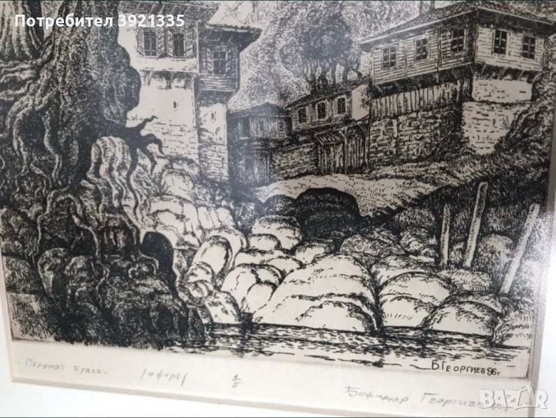 Картина “Старият бряст” - офорт под стъкло- перфектен; на Божидар Георгиев 1996 г.; размер 26/32 с рамката; цена 95 евро.