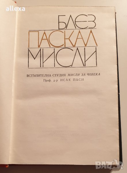 " Блез Паскал - мисли " - 1972г., 380стр., твърди корици, има посвещение на първата страница иначе е като нова.