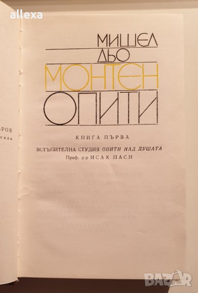 " Опити " - книга първа - Мишел Дьо Монтен, 1969г., 595стр., твърди корици. Перфектно състояние - като нова.