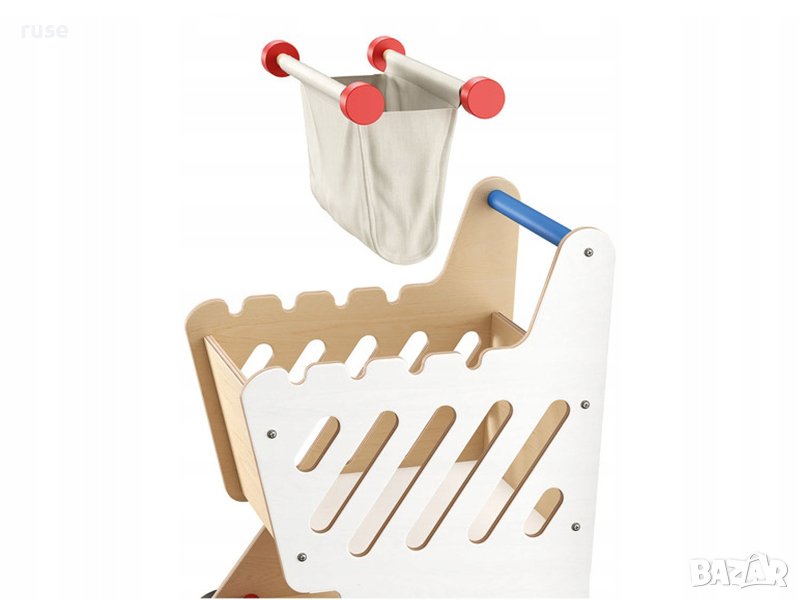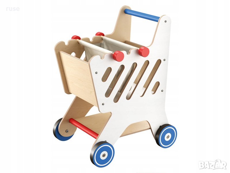 Дървената пазарска количка, която може да побере всички необходими продукти за едно истинско пазаруване и в същото време да стимулира баланса на детето, въображението, креативността, ролевите игри, логическото мислене, подобрява моториката и стимулира прохождането при най- малките.