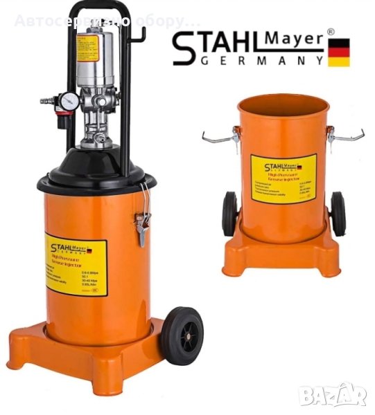 Пневматична мобилна помпа за гресиране STAHLMAYER е с налягане на въздуха 300-400 бара и капацитет 0.85 л/мин. Помпата се захранва пневматично, така че високото работно налягане се достига бързо и може да се поддържа дълго време. Манометърът показва налягането, при което се инжектира гресът. Пистолетът за грес е оборудван с три напълно въртящи се съединителя, така че можете също да го позиционирате на труднодостъпни места. Той може да бъде окачен на дръжката чрез предвидените за целта куки. Капакът може се отвори бързо с два ръчни винта. Помпата е лесн за придвижване благодарение на двете фиксирани колела и ергономичната дръжка.