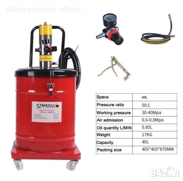 Пневматична система за гресиране 40 литра, снимка 1 - Други инструменти - 43383776 Пневматична система за гресиране 40 литра, снимка 2 - Други инструменти - 43383776 Пневматична система за гресиране 40 литра, снимка 3 - Други инструменти - 43383776 Пневматична система за гресиране 40 литра, снимка 4 - Други инструменти - 43383776 Пневматична система за гресиране 40 литра, снимка 5 - Други инструменти - 43383776 1/5