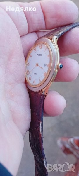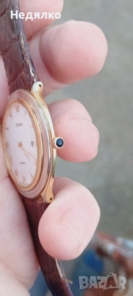 Много рядък от 1970-80г,както съм го купил,нова скъпа батерия Maxell,ново уплътнение на задния капак.Каишка от естествена крокодилска кожа Condor,минерално стъкло,позлата,коронка с естествен оникс.