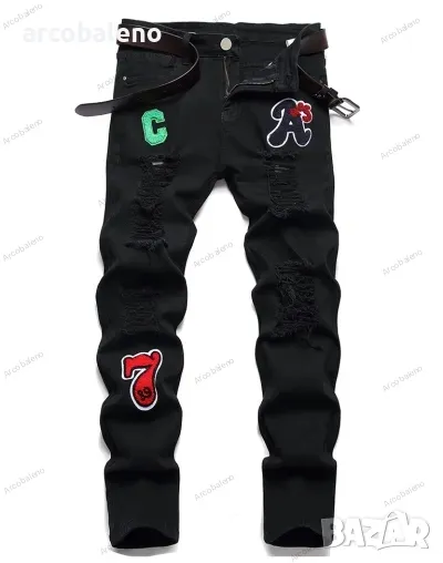 Мъжки тесни дънки с кръпки с прави крачоли, 2цвята