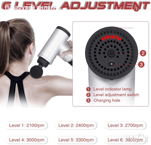 В комбинация с различните приставки, вие можете да избирате и от 6-те различни режима на работа и интензитет на масажиращия пистолет в зависимост от своите желания и потребности;