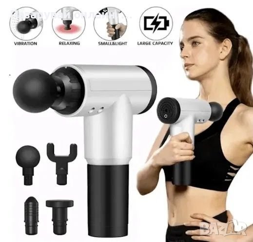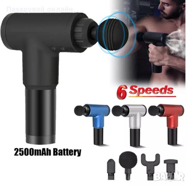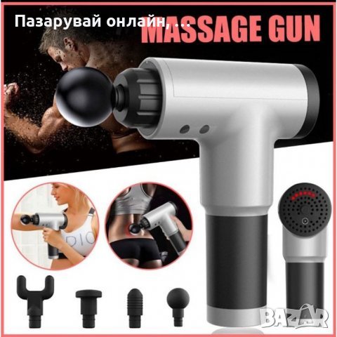 Професионалните спортисти, както и активно спортуващите хора знаят, че след неуморни тренировки винаги идва моментът със стегнатите мускули и неприятната мускулна треска. Обикновено повечето хора използват специални масажи, които да успокоят мускулите и напрежението в тях след интензивна тренировка, но това не е особено бюджетен вариант и съответно не всеки може да си позволи честото посещение при масажист. С масажиращия пистолет вие ще имате възможността да масажирате цялото си тяло от комфорта на вашия дом или пък в съблекалнята в спортната зала. Той е изработен от подсилена ABS пластмаса, гума, метал и електронни компоненти. Пистолетът-масажор разполага с мощен безшумен мотор и презареждаща литиева батерия с капацитет от 2600 mAH. Той разполага още с вградена система за безопасност при ползване и ще ви помогне да успокоите мускулите и тялото си. Определено това е една изключително практична и полезна придобивка, която ще ви накара да забравите завинаги за неприятната и болезнена мускулна треска. С негова помощ ще отпускате натоварените мускули за минути, където и когато пожелаете.
