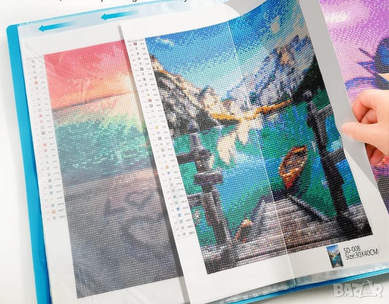 със залепващо покритие със схема на картината, пластмасови диаманти