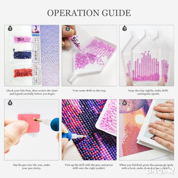 със залепващо покритие със схема на картината, пластмасови диаманти