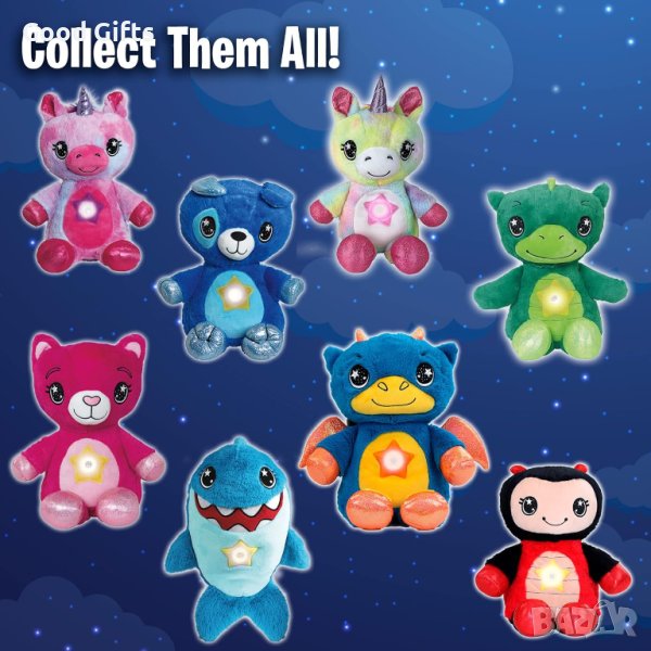 Те са меки и красиви плюшени играчки , които могат да прожектират светещи звездни и забавни форми по стените и тавана на стаята.