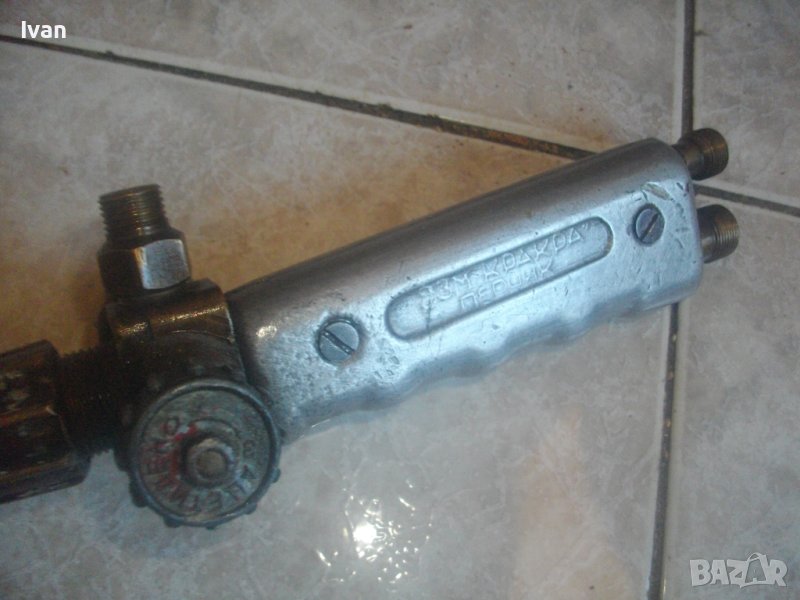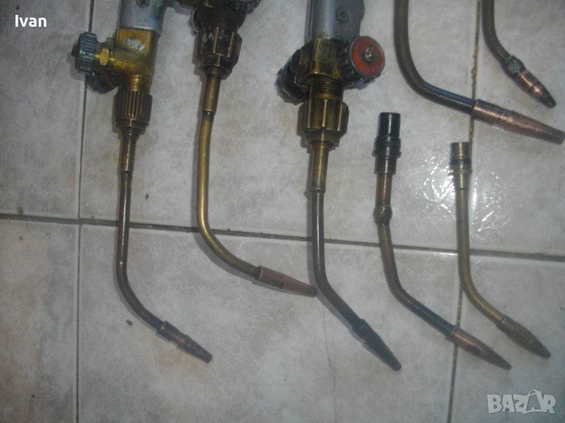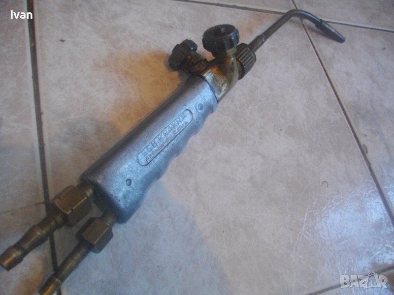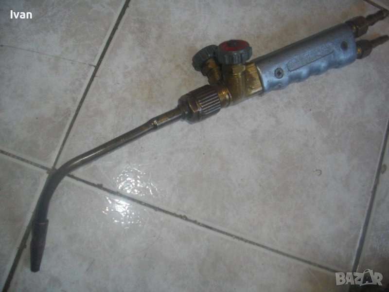 оксижен за газо-киислородно-ацетиленово рязане/запояване/спояване. Запазен външен вид и добро техническо/работно състояние. Два извода отзад за скачване с маркучи. Някой горелки имат оригинални щуцери, една няма щуцери.
