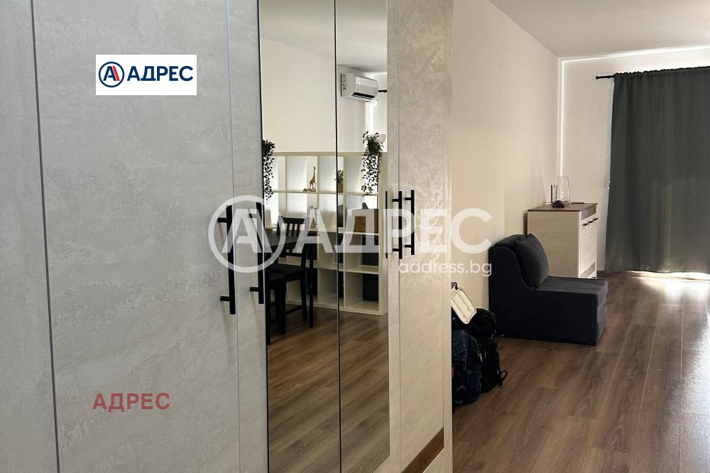 Предлагаме просторно и слънчево студио в жилищен комплекс SHARTRES. Жилището е разположено на втори етаж и се състои от голяма стая open space, разделена на отделни кътове. Жилището е с функционално разпределение. Висок клас довършителни работи. Напълно обзаведен имот, висок клас бяла и черна техника. Подово инфрачервено отопление, климатик DAIKIN. Свободно паркиране.