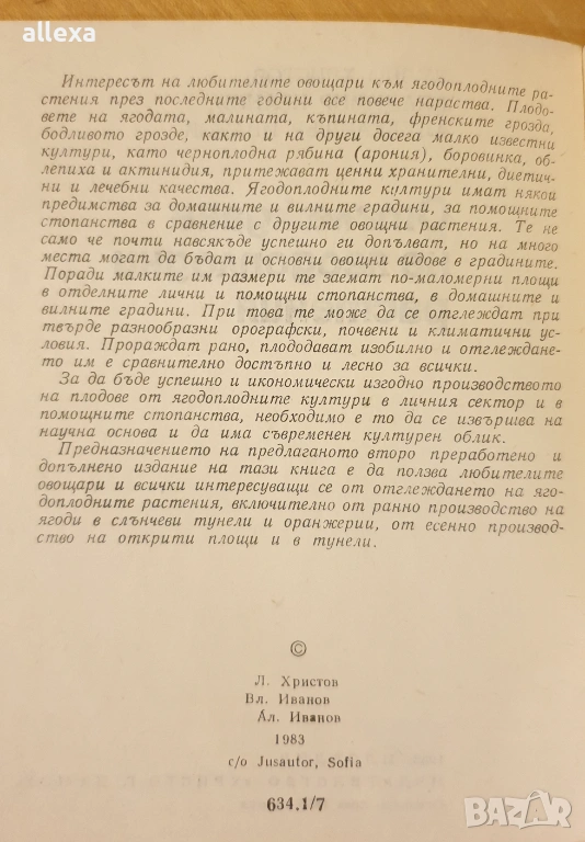 " Отглеждане на ягодоплодни растения " - 1983г., 209стр., меки корици, много добро състояние.