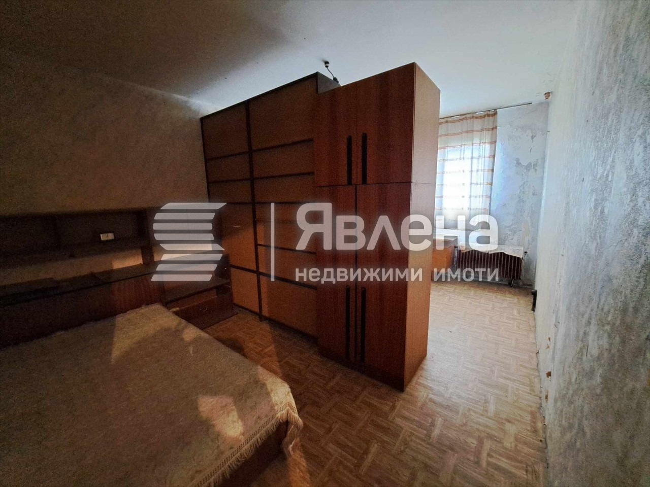 ОПИСАНИЕ: гарсониера с площ от 42 кв.м. Състои се от стая. кухня с тераса, коридор, баня и тоалетна заедно, прилежащо мазе. Имотът е без подобрения, нуждае се от основен ремонт. Дограма дървена, стени с тапети, подови настилки балатум и мозайка.