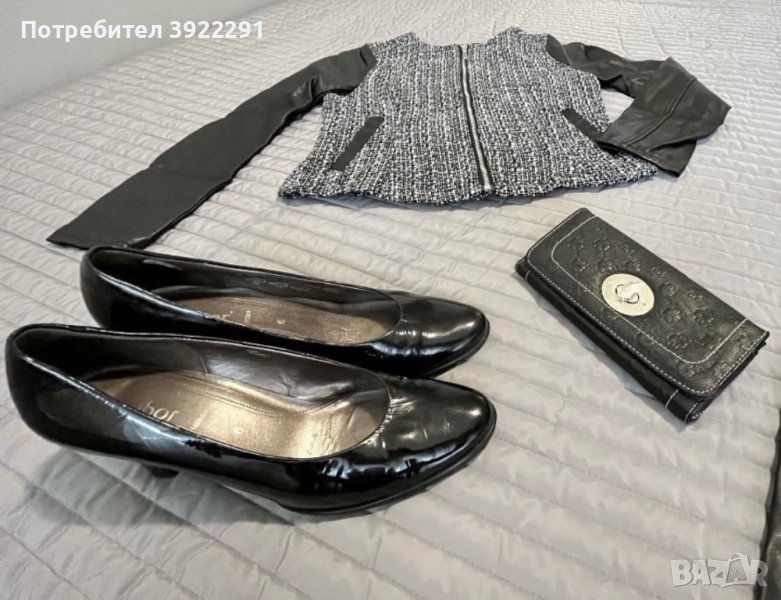 Към него ПОДАРЯВАМ черни, почти неносени обувки Gabor, отговарят на номер 40 и голямо портмоненце.