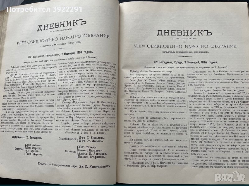 Стенографски дневници на VIII Народно събрание от 1984 г.; отпечатана през 1895 г.; голяма, с твърди корици, по които е разбираемо, че има следи от времето, предвид, че е на почти 130 г. антикварна книга! Отвътре книжното тяло е в отлично състояние.; 810 страници;