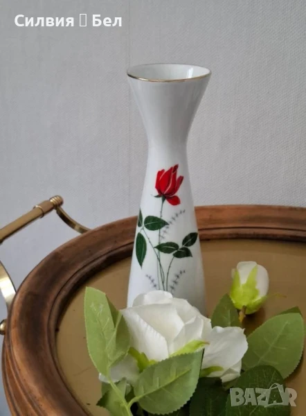 🌹 Порцеланова ваза с червена роза — Plankenhammer 🌹