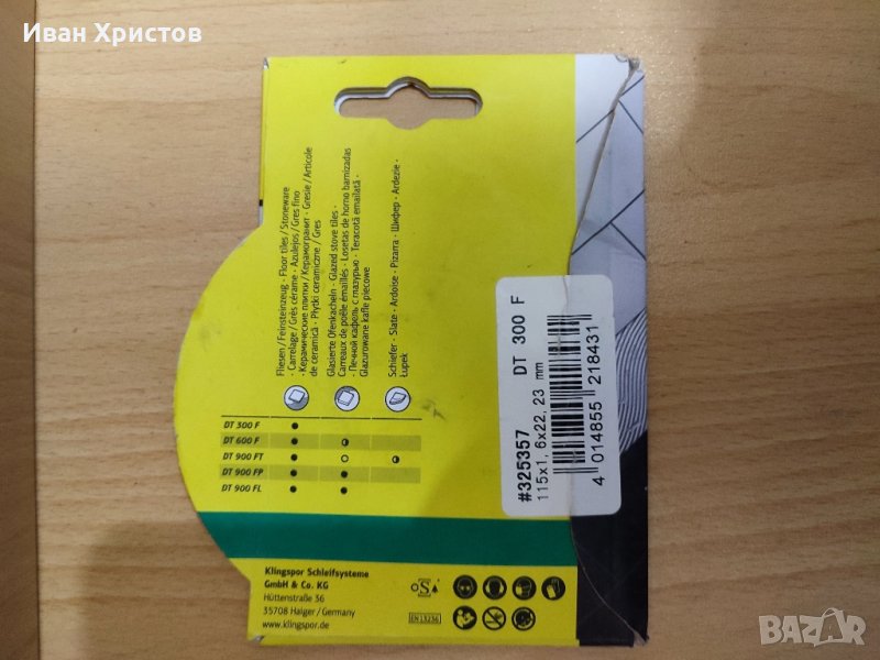 Диамантен диск за рязане на облицовъчни плочки, диаметър 115 мм.Диамантен диск за рязане на фаянс Klingspor DT 300 F c диаметър 115 мм и вътрешен отвор 22.23 мм. Ширината на сегмента е 1.6 мм, а височината 7 мм. Подходящ е за рязане на облицовъчни плочки.