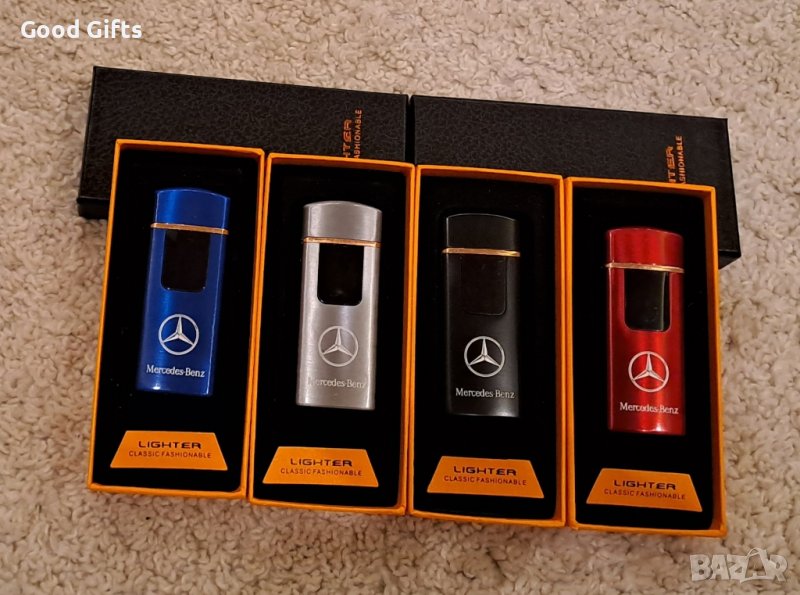 Луксозна електрическа запалка с логото на Мерцедес. Идеална за всеки фен на марката Mercedes. Бъдете оригинални и неповторими с тази запалка. Може лесно и бързо да я заредите в автомобила си, чрез USB кабел, който върви в комплект със запалката. Получавате и подаръчна кутийка към нея.
