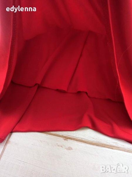 Малиново червена рокля в миди дължина, с подплата отдолу, закопчава се с цип странично, има малка еластичност, за това ще дам точни размери. По етикет е размер М, дължина - 113 см , бюст - 40 см., , талия - 34 см., ханш - 45 см.