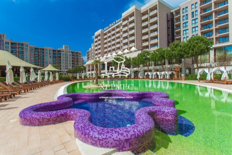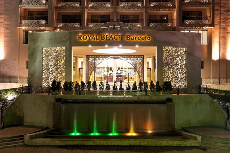 Агенция Хермес предлага чудесен двустаен апартамент в луксозният комплекс в Royal Beach Barcelo к-с Слънчев бряг, само на 50 метра от морския бряг, главната пешеходна улица и всички удобства и развлечения. Крайбрежната ивица е комбинация от екзотична природа и модерно строителство, която го превръща в неустоимо място за отдих и развлечение. Курортът Слънчев бряг предлага разнообразни места за развлечение, многобройни ресторанти, атрактивни нощни клубове, модерни дискотеки и луксозни кафенета. Всичко това го прави безкрайно привлекателен за български и чуждестранни туристи.