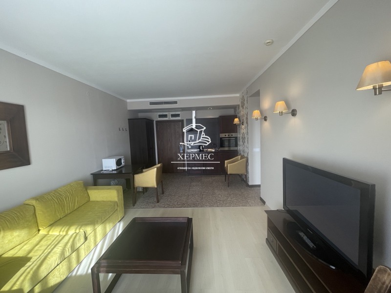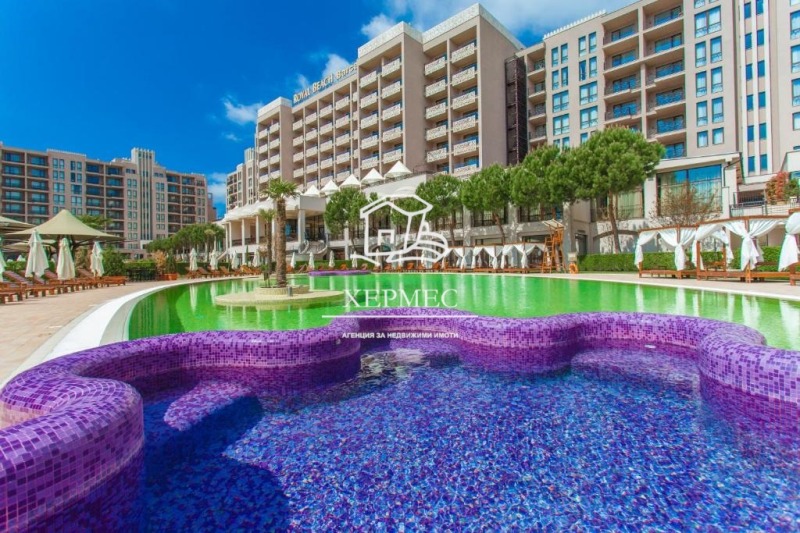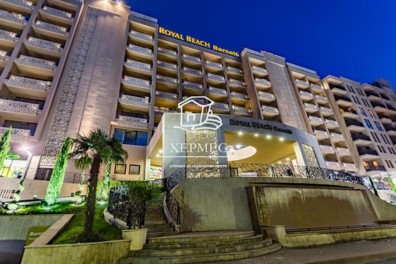 Агенция Хермес предлага чудесен двустаен апартамент в луксозният комплекс в Royal Beach Barcelo к-с Слънчев бряг, само на 50 метра от морския бряг, главната пешеходна улица и всички удобства и развлечения. Крайбрежната ивица е комбинация от екзотична природа и модерно строителство, която го превръща в неустоимо място за отдих и развлечение. Курортът Слънчев бряг предлага разнообразни места за развлечение, многобройни ресторанти, атрактивни нощни клубове, модерни дискотеки и луксозни кафенета. Всичко това го прави безкрайно привлекателен за български и чуждестранни туристи.