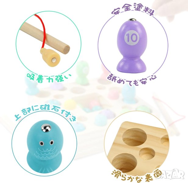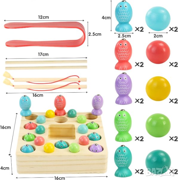 пластмасови щипки, броене по номера на гърба на рибите, оцветяване на дървените