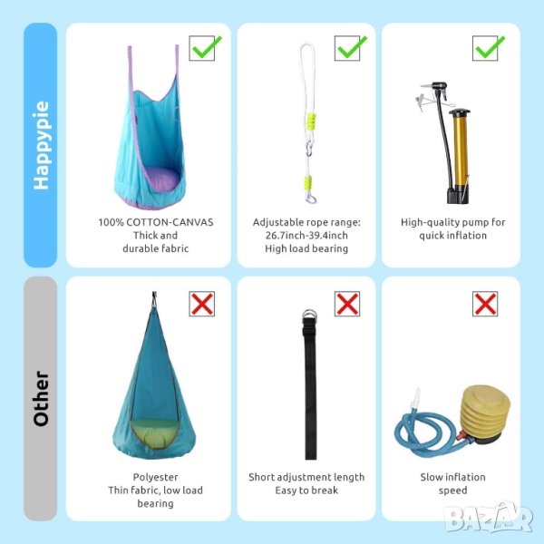 Забавен начин за почивка - децата могат да четат, да играят, да слушат музика, да мечтаят или просто да се отпуснат.