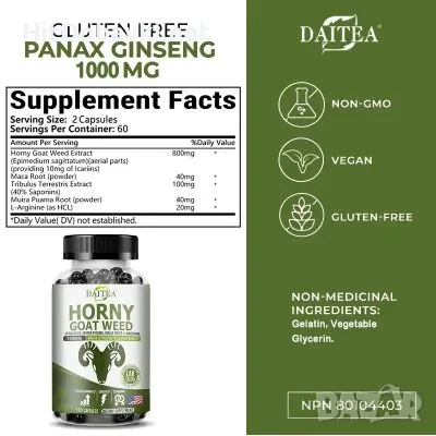 1000 мг съдържа: Horny Goat Weed / Разгонен козел 800 мг + Трибулус