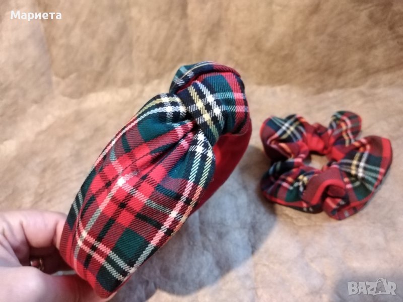 комплект Диадема и Скрънчи в Червено Каре Аксесоари за Коса Ръчна Изработка Диадема с възел → Обява 43414970