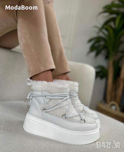 💥Кожени боти на платформа с пух💥