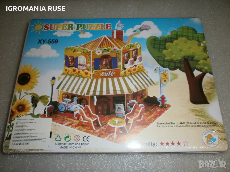 3Д Пъзел 3D Puzzle кафене /cafe/- размери /dimensions/ приблизително 21/20/22 см. Ниво на трудност /difficulty/ 4 от 5. Цена 3 EU
