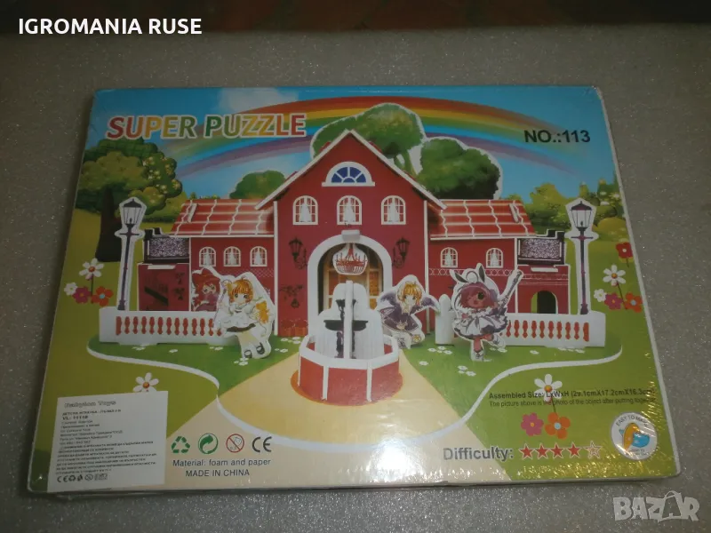 3Д Пъзел 3D Puzzle къща /house/ размери /dimensions/ приблизително 29/17/16 см. Ниво на трудност /difficulty/ level 4 от 5. Частите са от картон /foam and paper/. Цена 3 EU