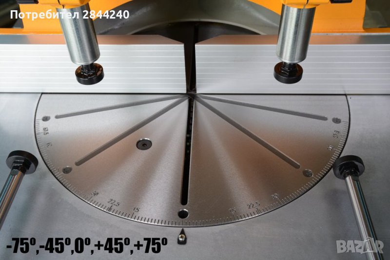 Диапазон на завъртане на работния плот от - 75° наляво до +75° надясно