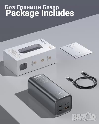 - Мощност 65W: Преносима батерия 20000mAh с бързо PD 65W зареждане.